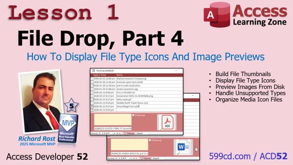 | 2026-02-13 | | File Drop, Part 4 | How To Display File Type Icons And Image Previews In Microsoft Access |