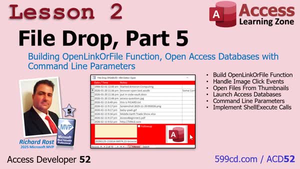 | 2026-02-13 | | File Drop, Part 5 | Building OpenLinkOrFile Function, Open Access Databases with Command Line P... |