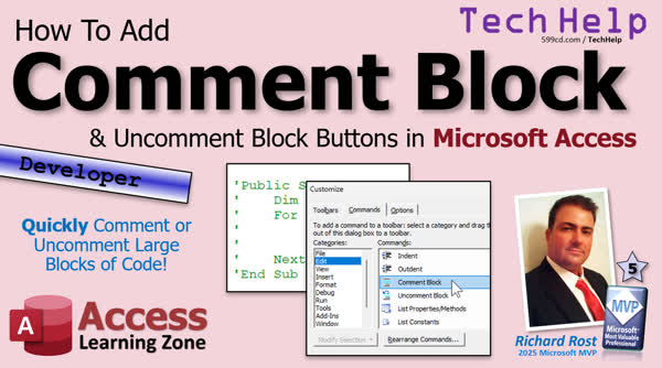 | 2025-12-09 | | Comment Block | How To Add Comment Block & Uncomment Block Buttons to the Microsoft Access ... |