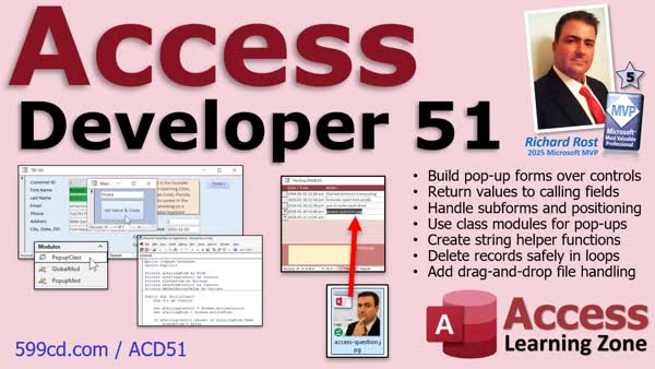 | 2026-01-25 | | Access Developer 51 | Microsoft Access Developer 51: Pop-Up Over Control and Drag-and-Drop Files |