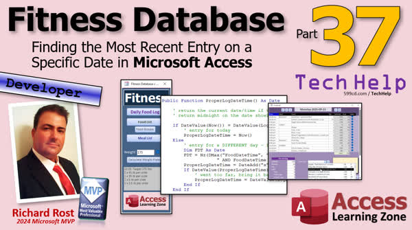 | 2025-09-17 | | Fitness 37 | Microsoft Access Fitness Database Part 37: Finding the Most Recent Entry o... |