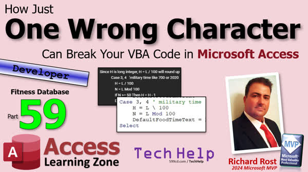 | 2025-11-05 | | Fitness 59 | How Just One Wrong Character Can Break Your VBA Code in Microsoft Access - ... |