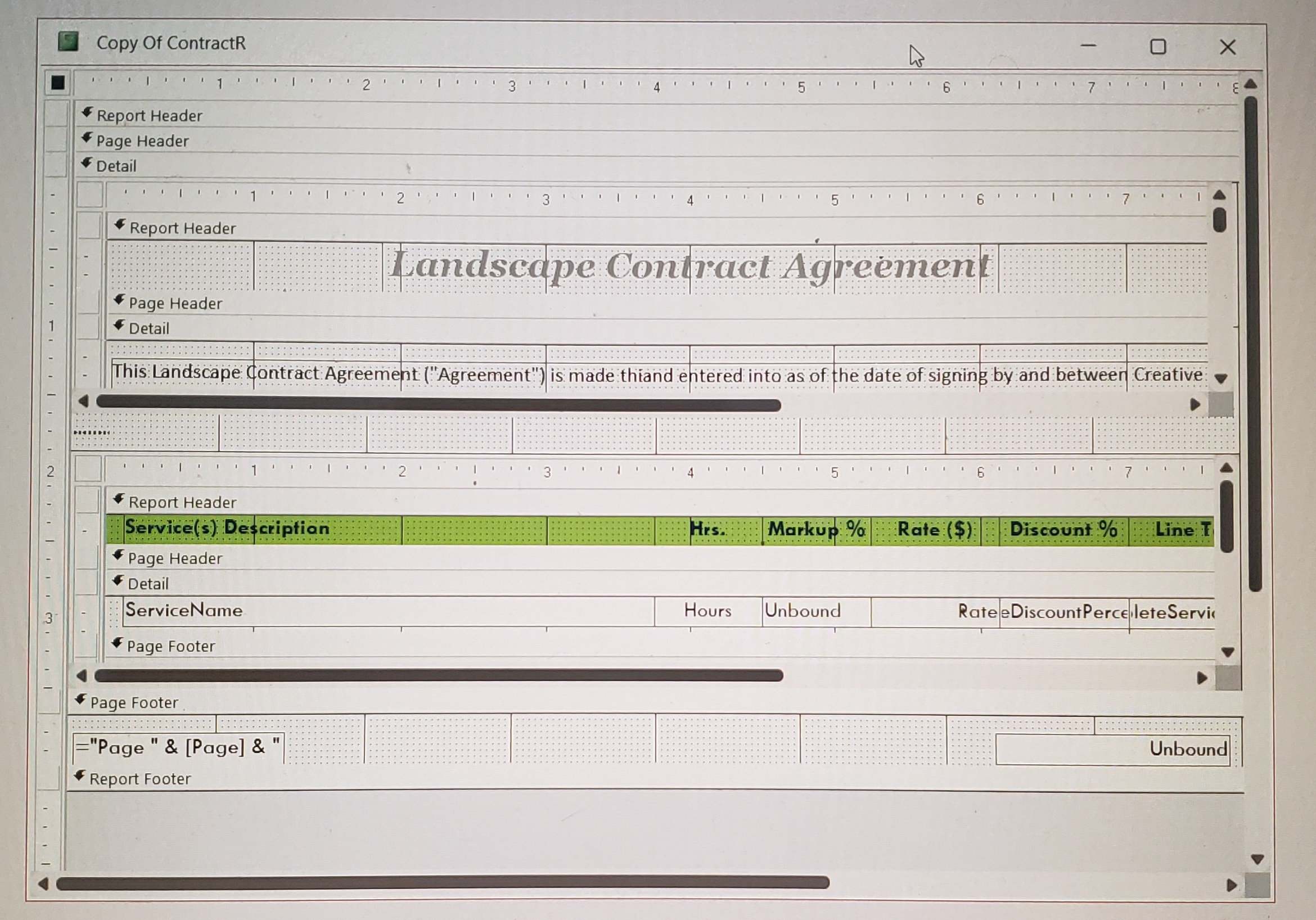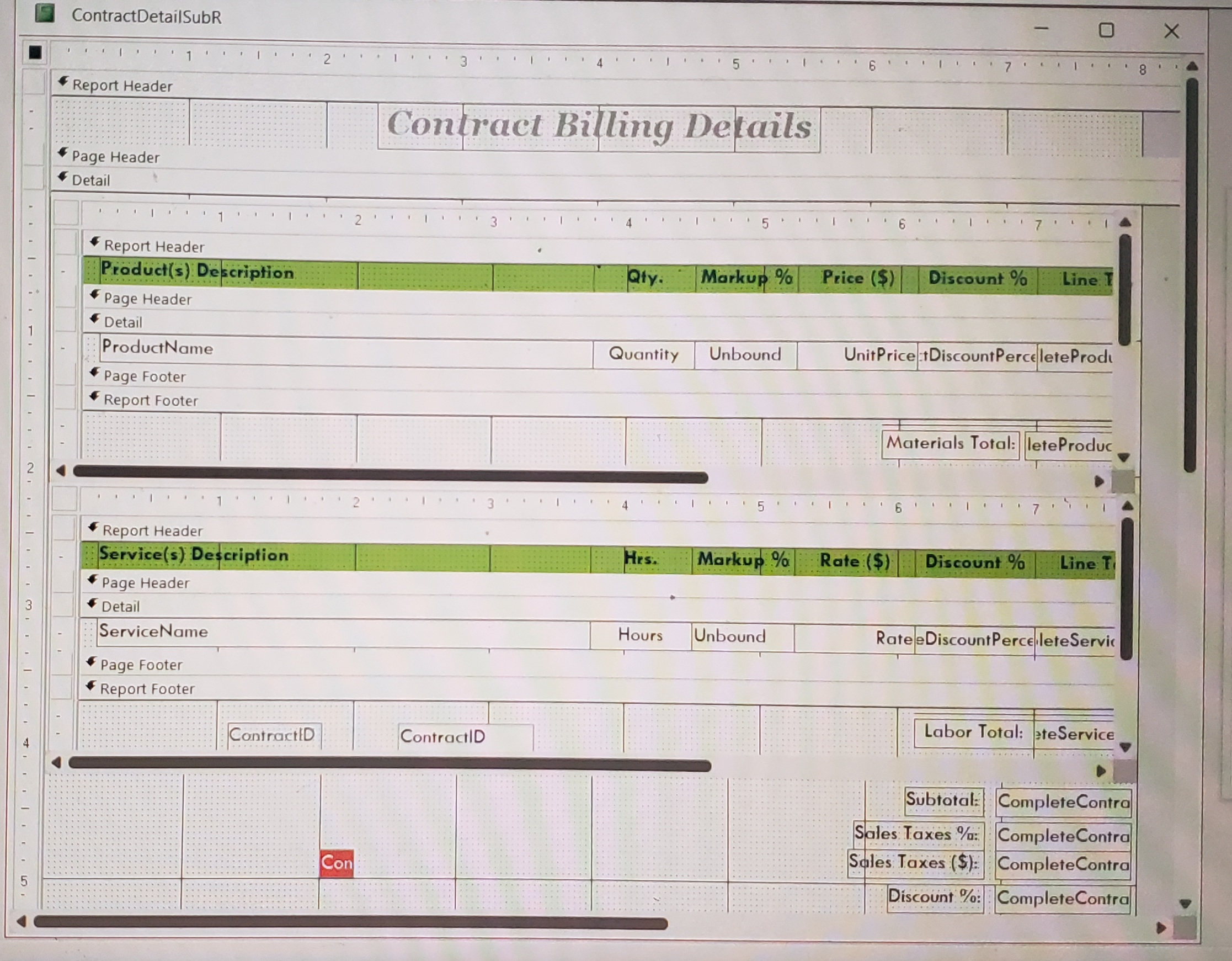 Sami, here's the Report Layout for the Complete Contract Report and the Sub Report, enclosed.