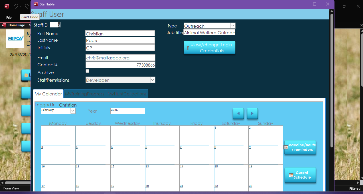 The datase is designed with the intension to use on a network of computers with access to a sharepoint site back end as im linking some acivity in a separate front end for task manager that speaks to Teams group planners.