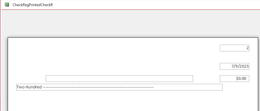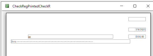 For some reason, the number amount and the written amount don't match in CheckRegPrintedCheckR. I watched through the whole video to see if Richard ran into same problem, so I could see how to fix it but, alas, he did not.