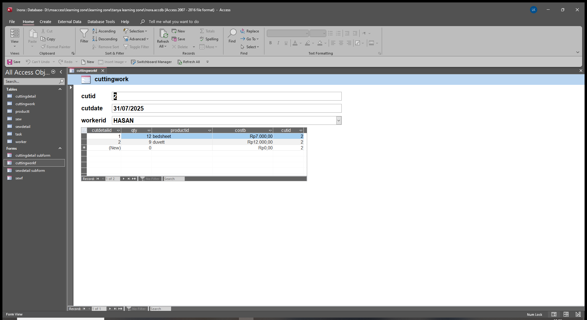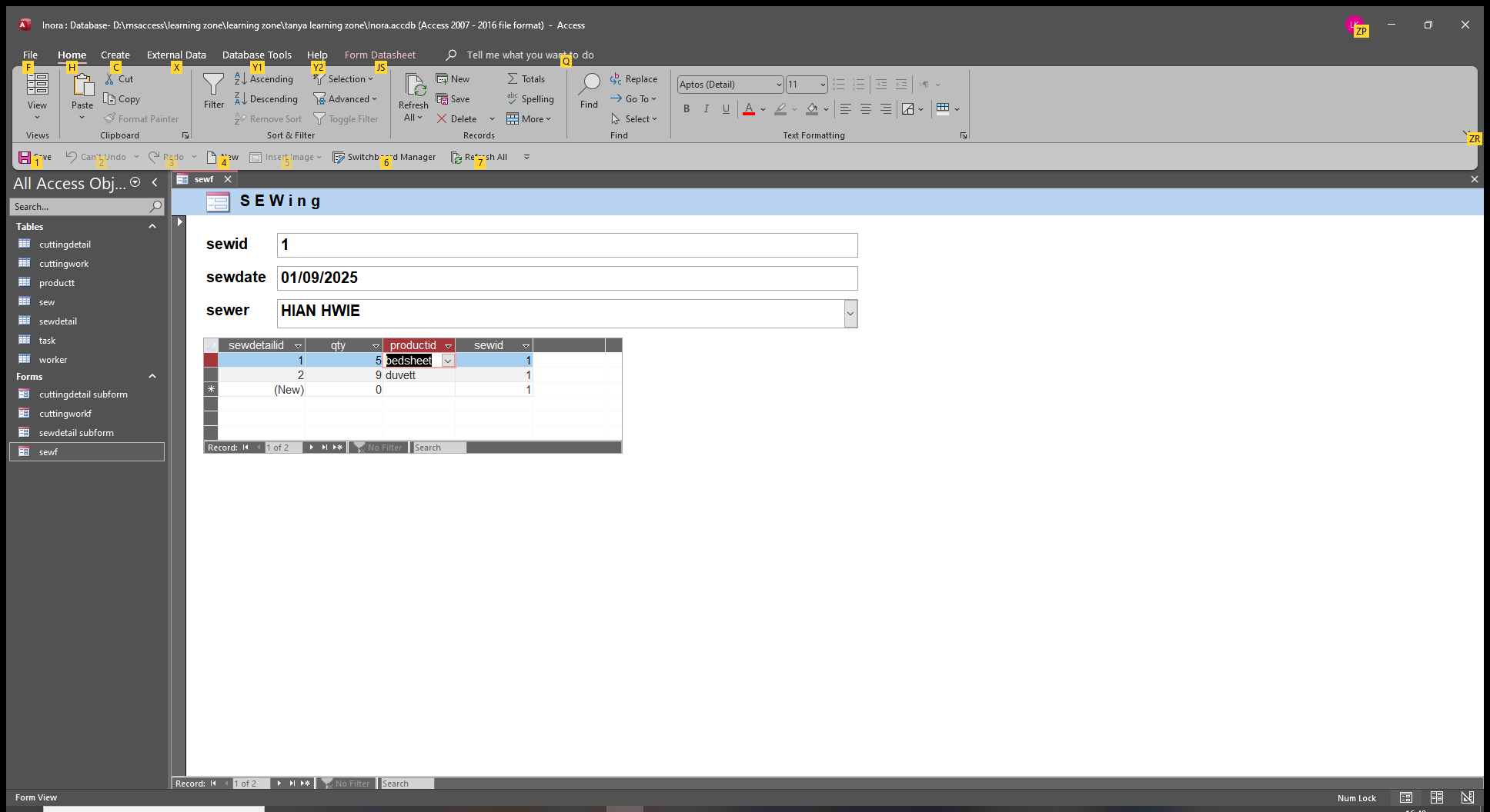 also if in the combo box telling that it can be added I want to show a report displaying quantity and who has sewed it.