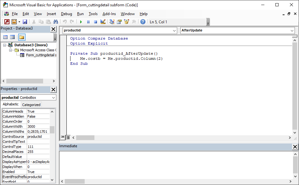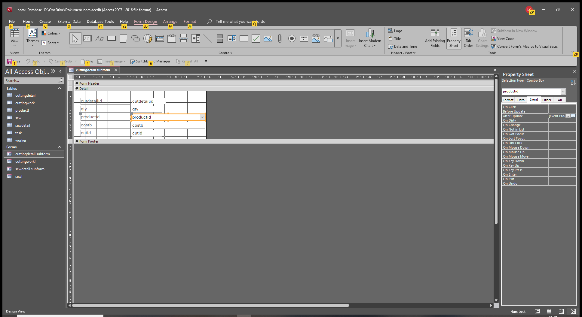 I changed the product name to cuttingdetailid (this is the primary key of CUTTINGDETAILT)