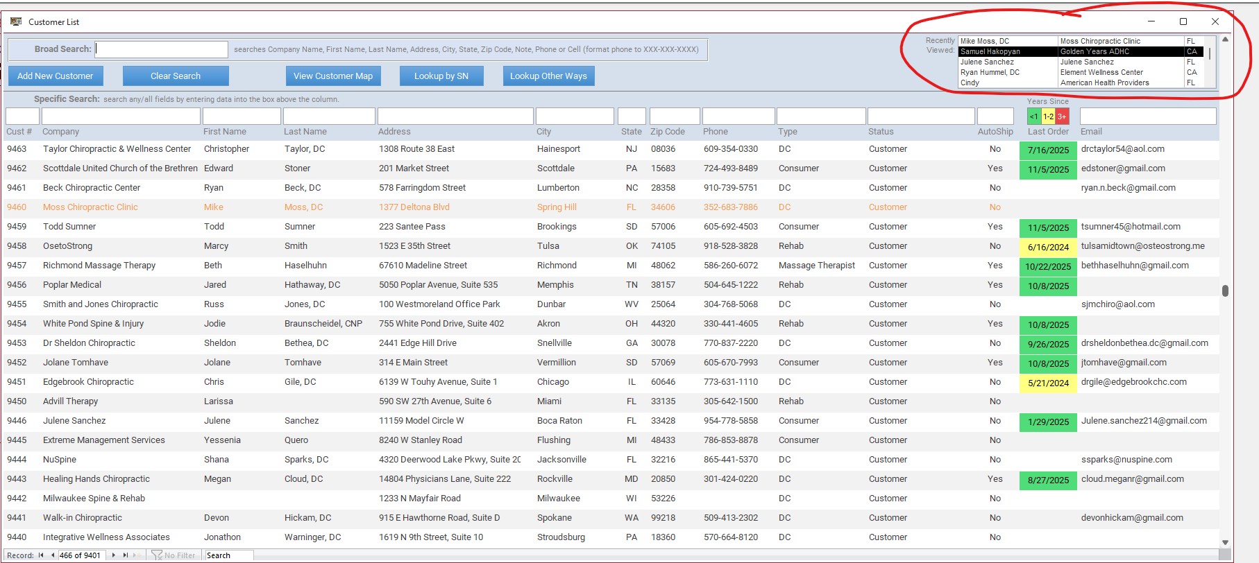 Recently viewed customer list. This saves a lot of time every day! SUPER helpful.