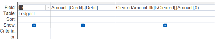 I have built the Basic Check Register after watching Richard's video and it turned out great. What I can't figure out is how to add other transactions to the same form, if that is even possible, such as savings transactions.I would like to see all that in one form and or query. It's the query calculations that I don't know how to do, for those other transactions.Using just the CheckRegQ works just fine, no issues.When I try to add the field names for other accounts in the same query doesn't work.
