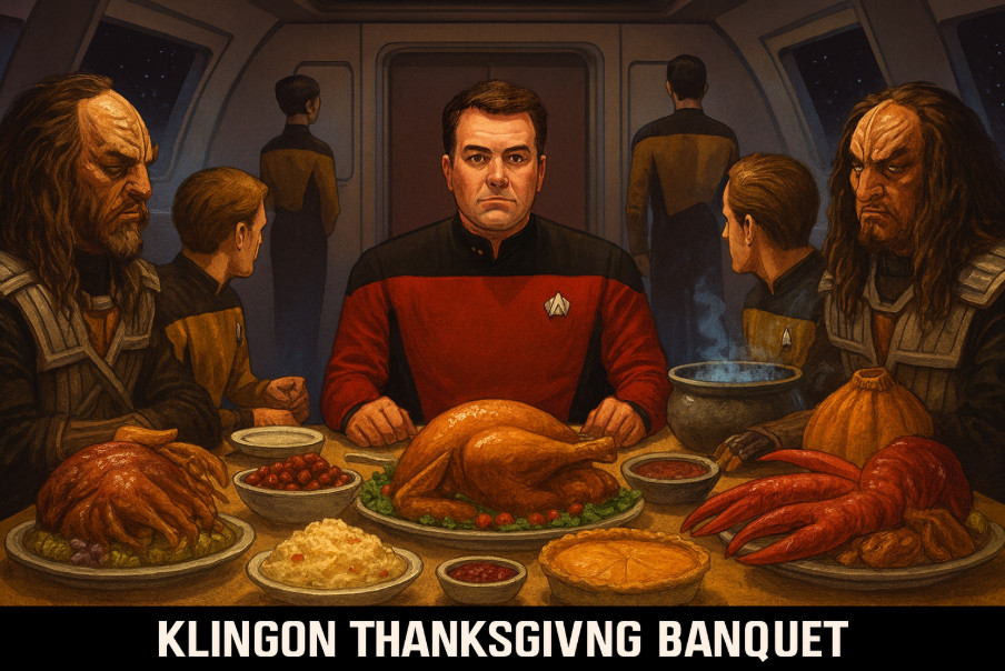 Captain's Log: It is 2300 hours on the eve of Thanksgiving, and the crew and I are preparing for a cultural exchange dinner with a visiting group of Klingons. This seemed like a good idea at the time, much like it did for Kirk, Spock, and McCoy in Star Trek VI. Did I break the fourth wall there?
