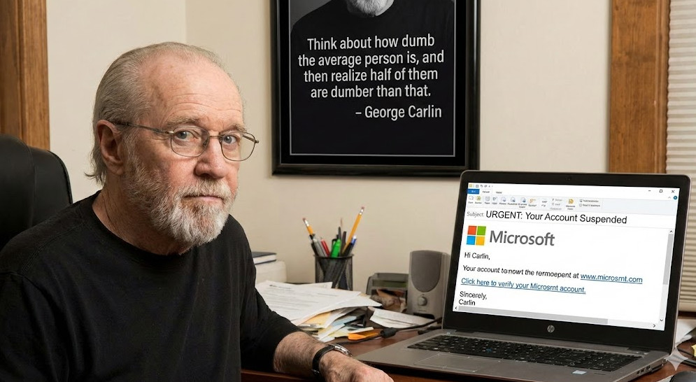 To quote the great George Carlin, Imagine how dumb the average person is, and then realize that half the population is dumber than that. It sounds harsh, but the spirit of it explains why these scams work so well. They do not rely on brilliance. They rely on people being human.