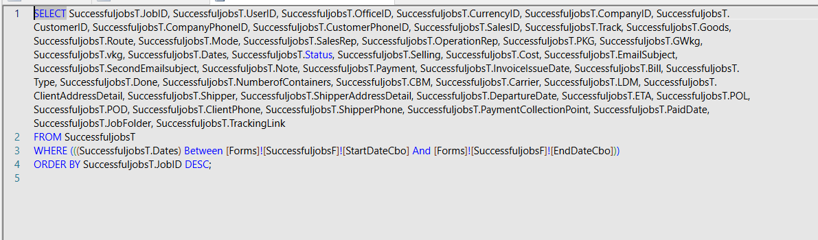 Affirmative, we have connected our database to SQL Server, and we have been using it for 1 year so far, but as the data keeps growing, the forms are getting slower. That is why I want to know if there is any faster way than an embedded query to load data into my form. I will upload my embedded local access Query SQL for your review