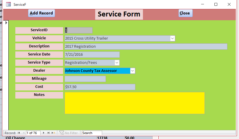 I have a service list form and I want to double click a field (Description)and open the Service Form of that record. Every time I double click any record it opens to the same record that does not pertain to that Service Record. Screenshots attached. what am I not doing correctly here.