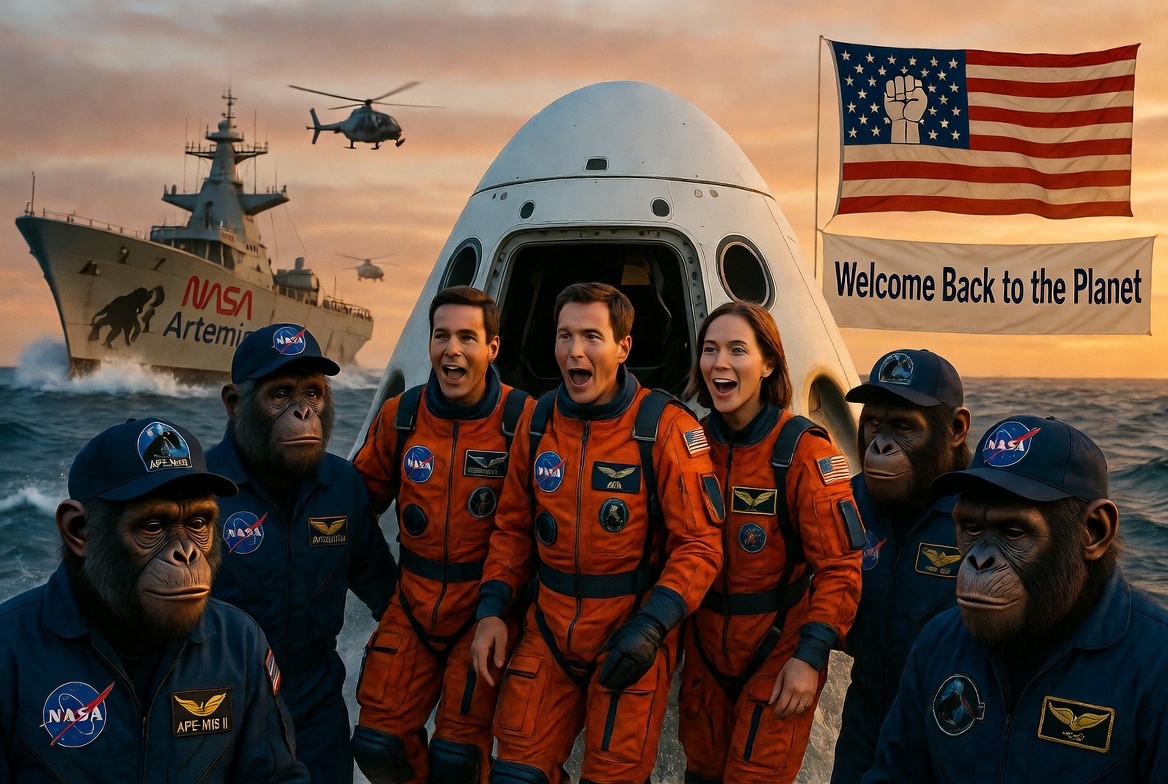 There is a meme going around about the NASA ground recovery team putting on Planet of the Ape suits to see the Artemis crews reaction when they get out of the capsule.