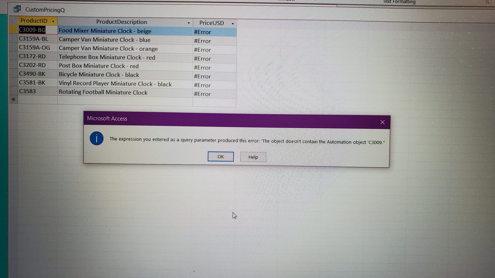 Hi Access expert! I was following Richard's "Customer-Specific Product Pricing for your Microsoft Access Order Entry Invoicing System" on YouTube because I want my invoice to automatically lookup the different price of a same product based on the Customer ID. However, I encountered an error when creating DLookup in the query that I could not resolved.
