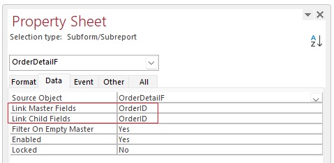 I tried to set it but I got the message "cannot build link between unbound forms"