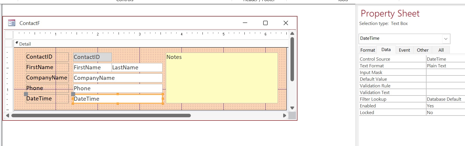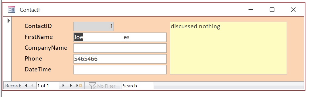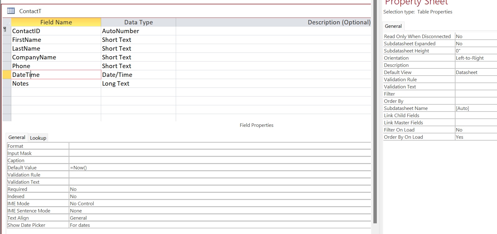 I did not include a picture of ContactT in regular view, but the new record includes the date.