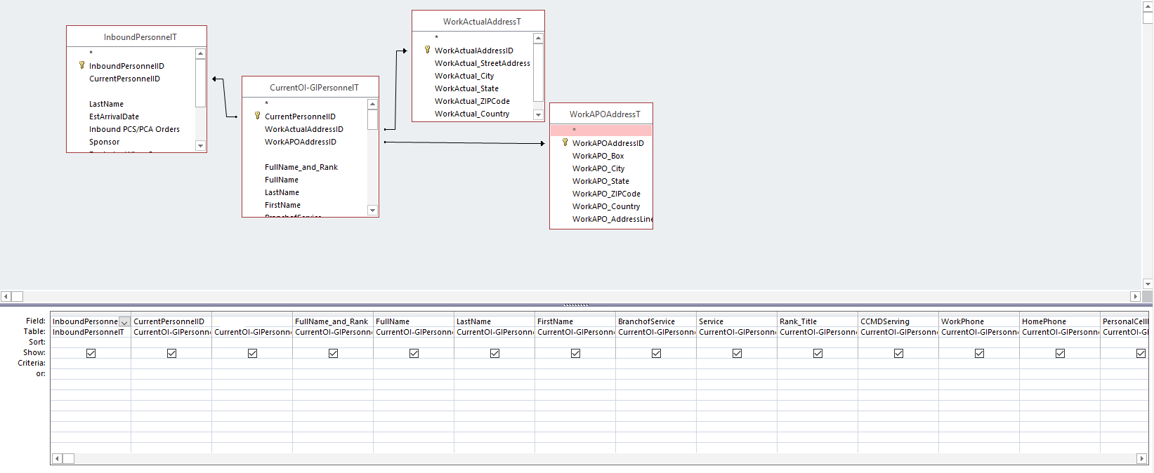 You have a blank field name in the InboundPersonnelT and in the CurrentOI-GIPersonnelT.