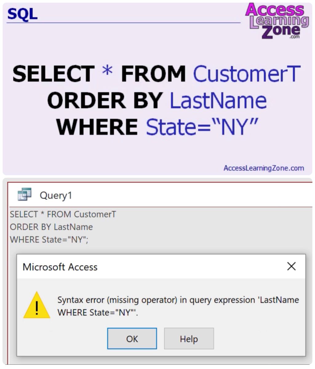 SELECT * FROM CustomerT WHERE State="NY" ORDER BY LastName