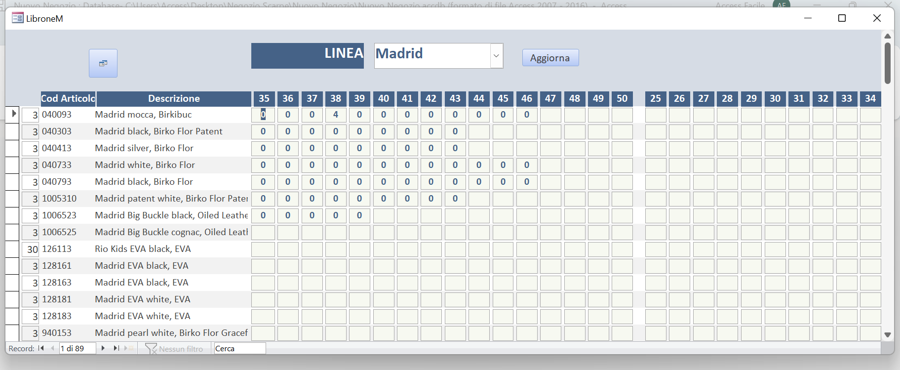 I need to have a single form to display the quantity avalabile of a certain line of product, taken from a query. I created the continous form, the filter and everything is fine. Each record though, has to show all the size of a certain product. I used the dlookupfunction that has 2 variables (line and size) to show these records, and works fine. Problem is there are a lots of records so, unless I keep clicking more and more anywhere on the form they don't show.