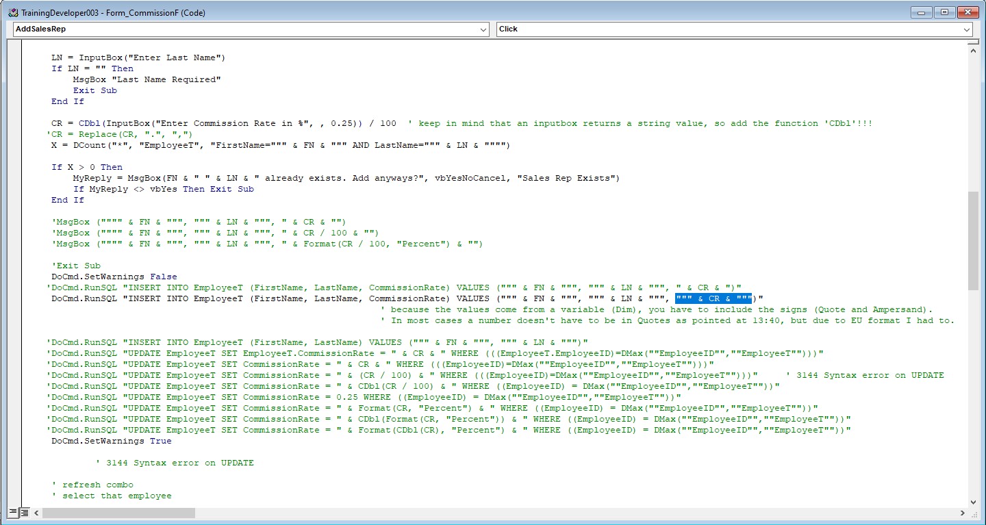 I tried to take that 3rd field from the INSERT and use an UPDATE Query to update the CommissionRate, but than I get various errors (mainly the 3144 syntax error).