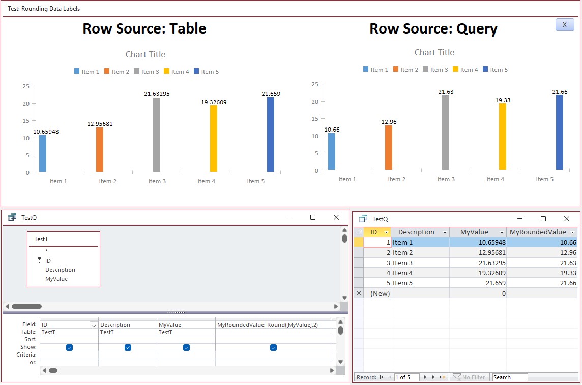 The second Chart shows the rounded values from the Query.