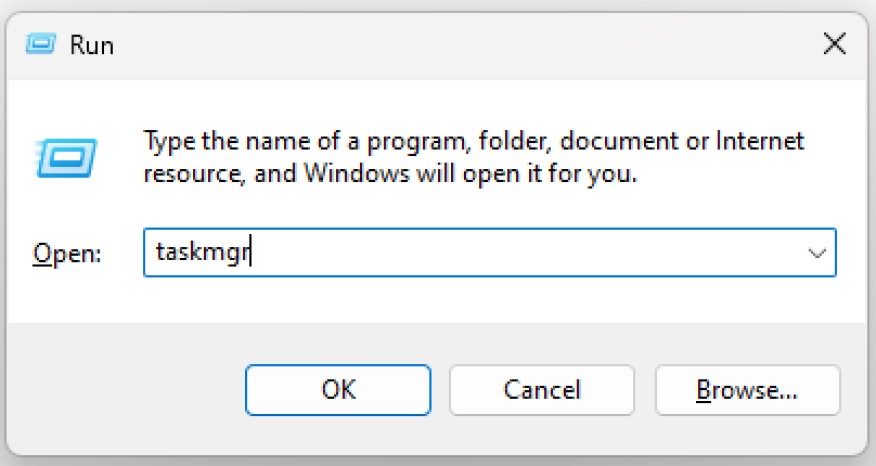 Another way to open Task Manager press WIN + R to bring up the Run dialog. Then in the box type in TaskMgr.