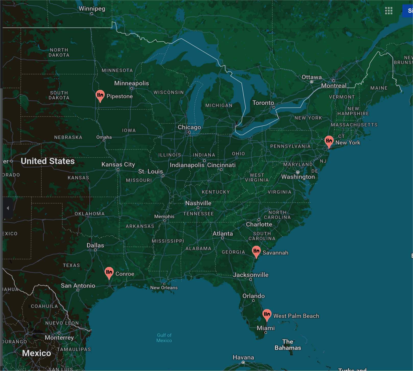 https://www.google.com/maps/search/5700 Okeechobee Blvd., West Palm Beach, FL 33417 | 150 East 50th Street, New York, NY 10022 | 1 Resort Drive, Savannah, GA 31421 | 110 East Main, Pipestone, MN 56164 | 320 Longmire Rd, Conroe, TX 77304