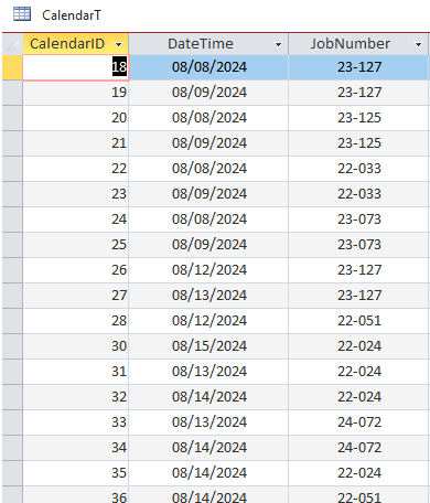 A. crate a new tables for each main variable so the calendar only shows all the dates associated with it. explain im using it for job tracking and updating. But i don't want see them all at once. calendar to have an object to select from?