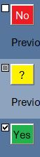 The conditional formatting of the text box looks like this sets the color to Yellow, Green or Red depending on whether the value is "?", "Yes" or "No".