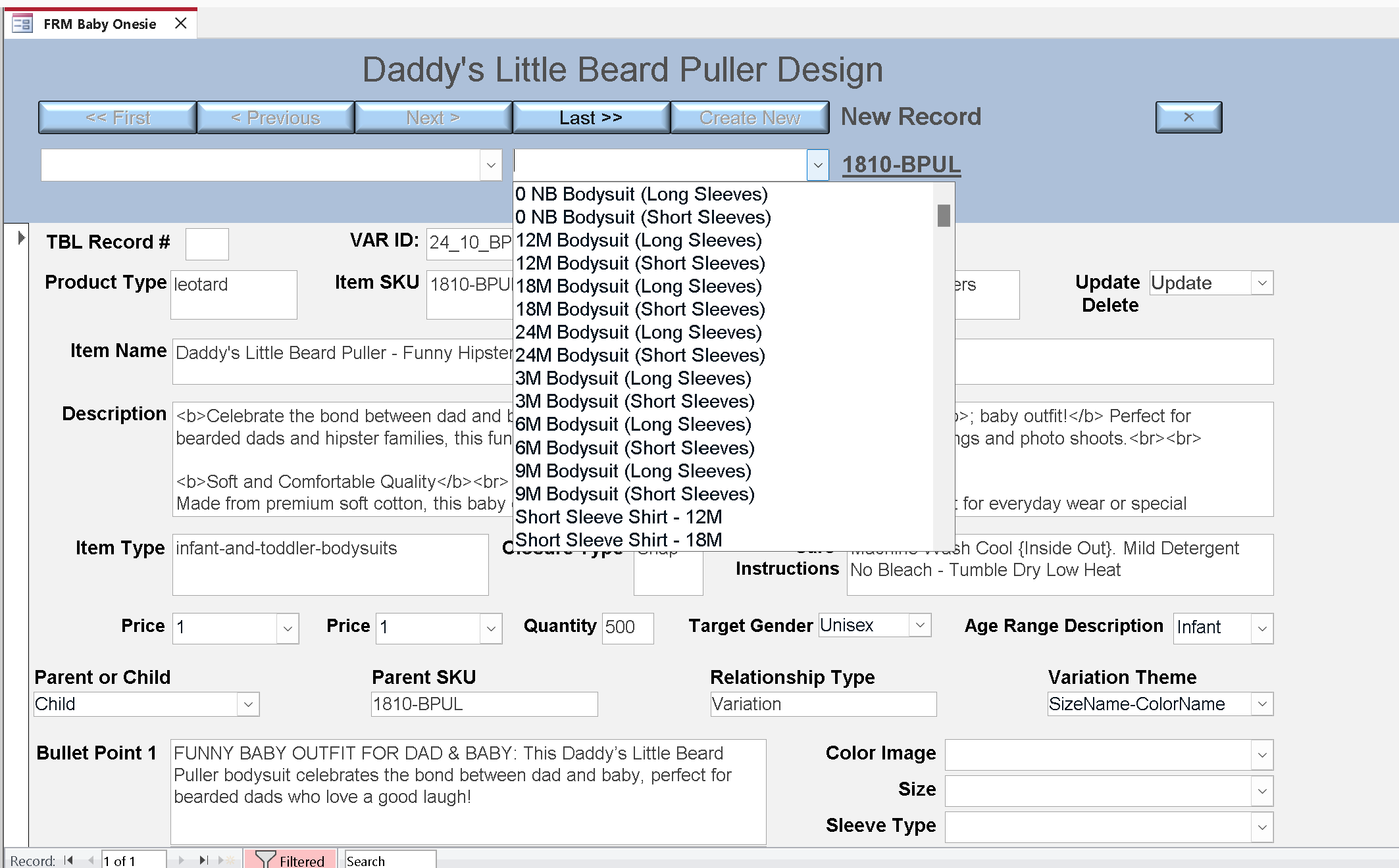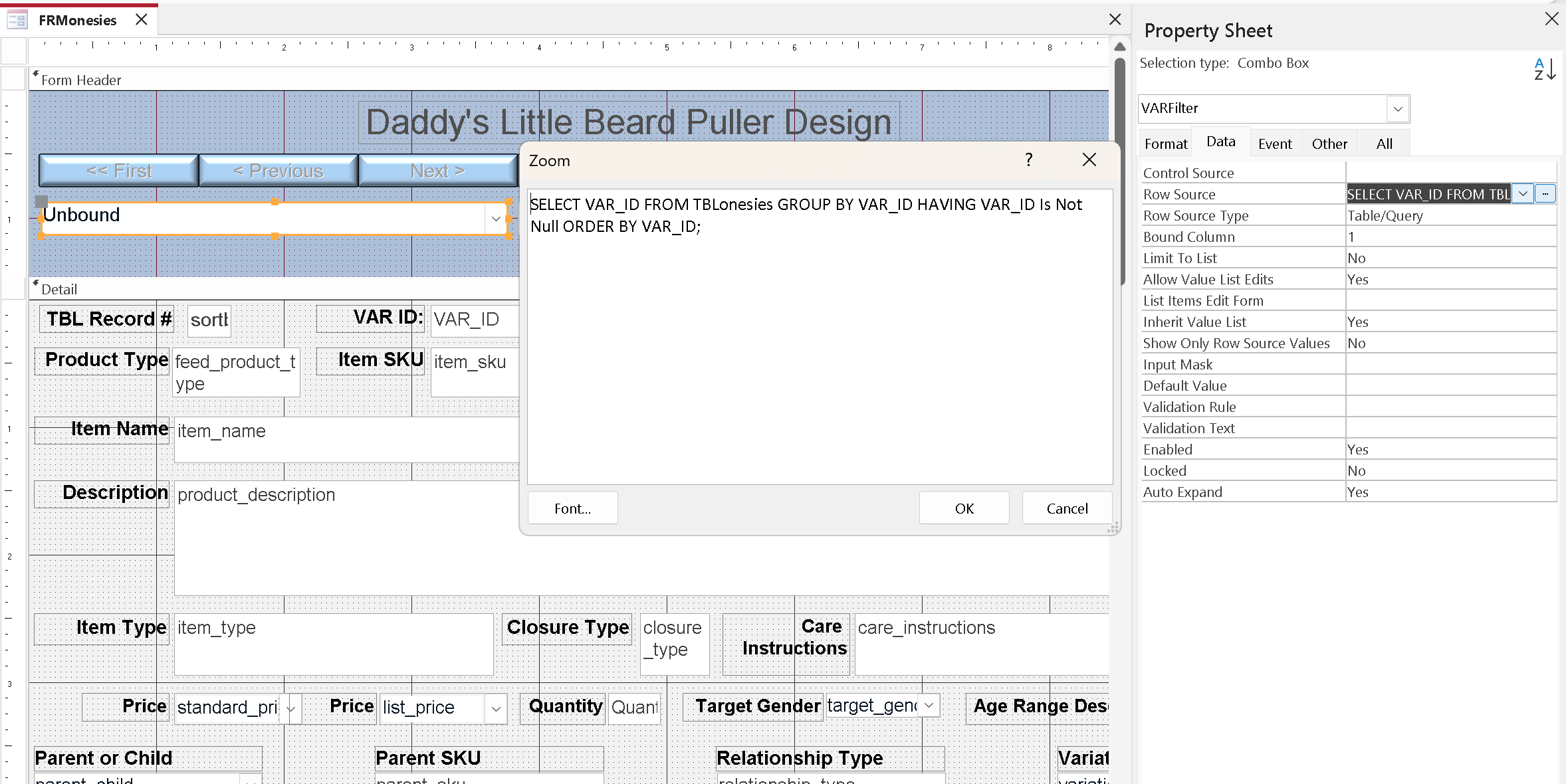 When I look at the Access navigation bar, every record I filter is record 1 of 1.  Before, it was displaying the number of records in the first field [VAR_ID], which I was manually filtering within the form. So in the design I'm working on, there are about 20 records.  So do I need to do a Sub Routine to requery the database for the correct recordset to navigate in?  Its a little confusing to me.