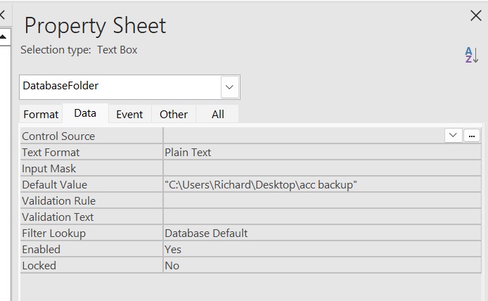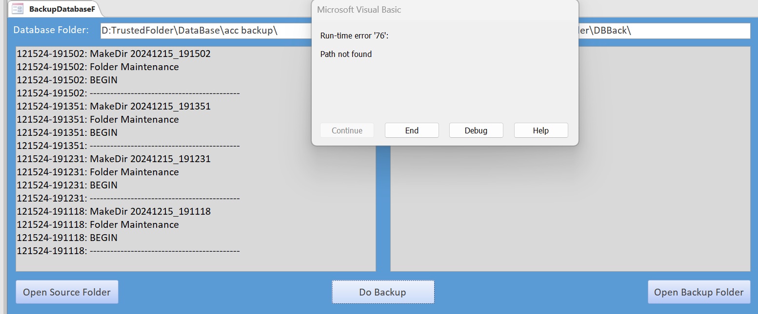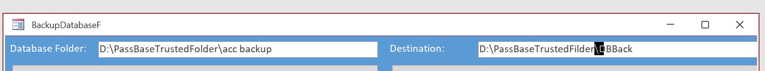 My question is how to I change the DataBase folder that it reading from and the Destination folder that it writing to in the backup subroutine.
